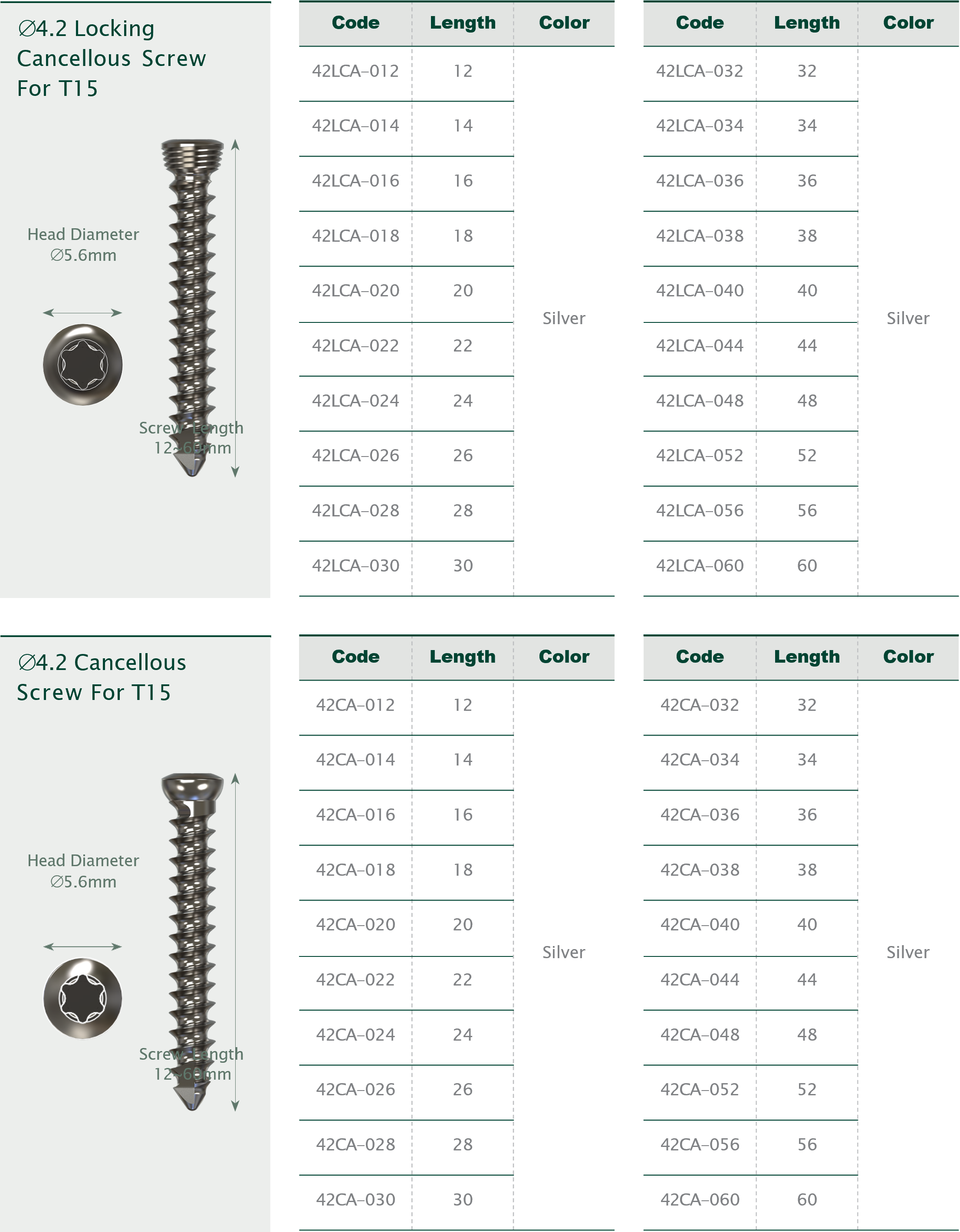 - ∅ 4.2 Locking Cancellous Screw For T15