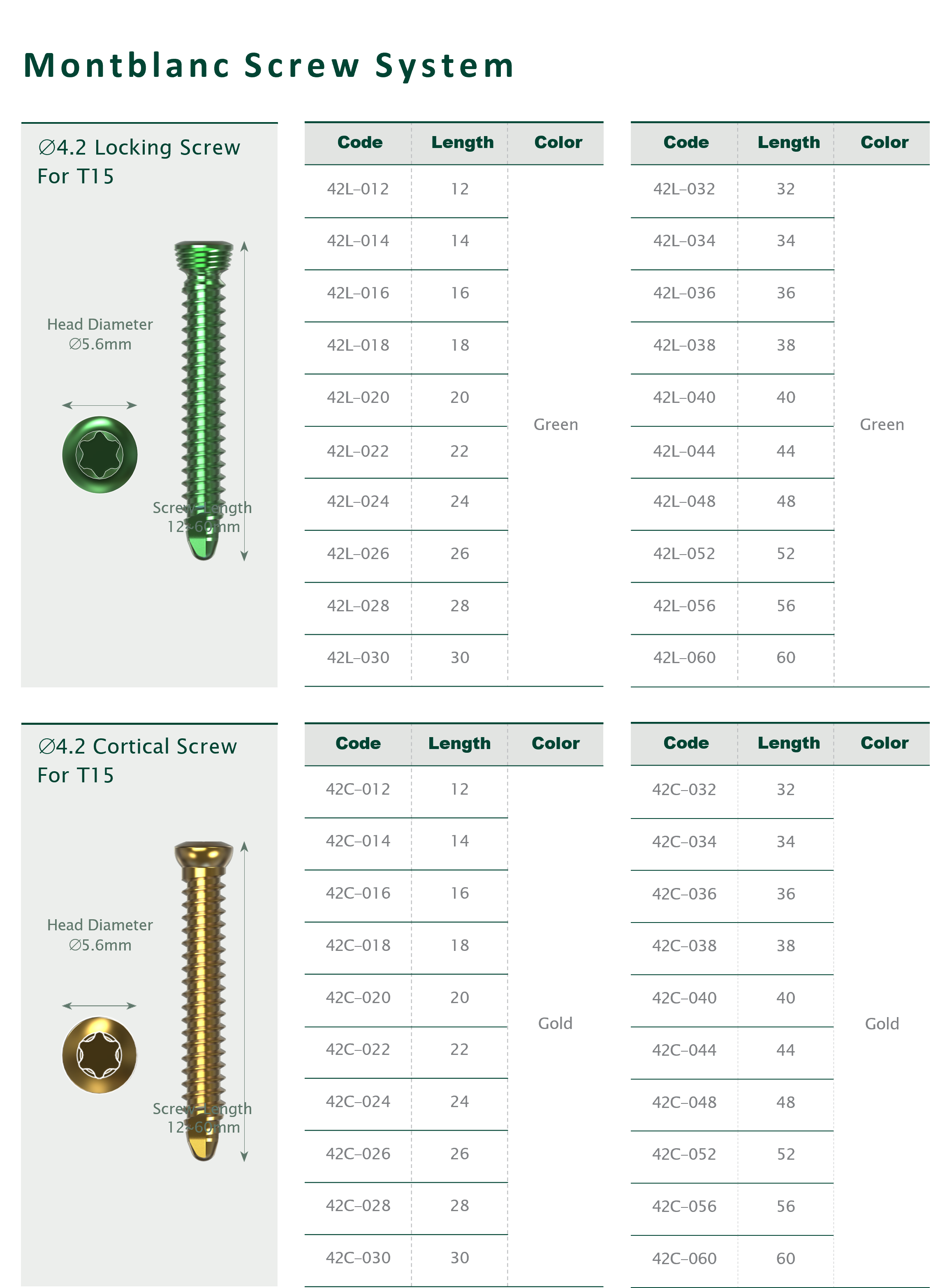 - ∅ 4.2 Locking Cancellous Screw For T15